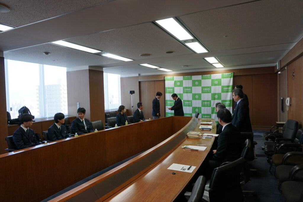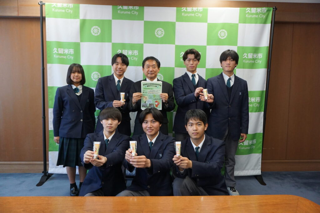 私たちが開発した商品を久留米市長 原口新五様に完成報告をさせていただきました。これまで重ねてきた研究の成果やハンドクリーム開発の取組の経緯を報告し、原口久留米市長からは、高校生が地域のものの魅力に気づき発信する活動をすることはすばらしいと激励のお言葉をいただきました★