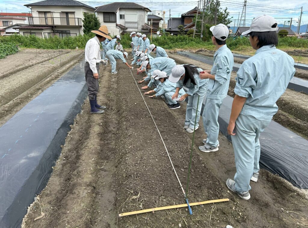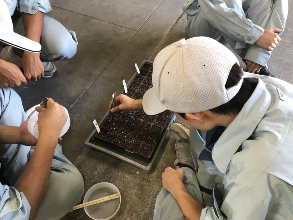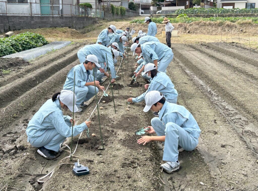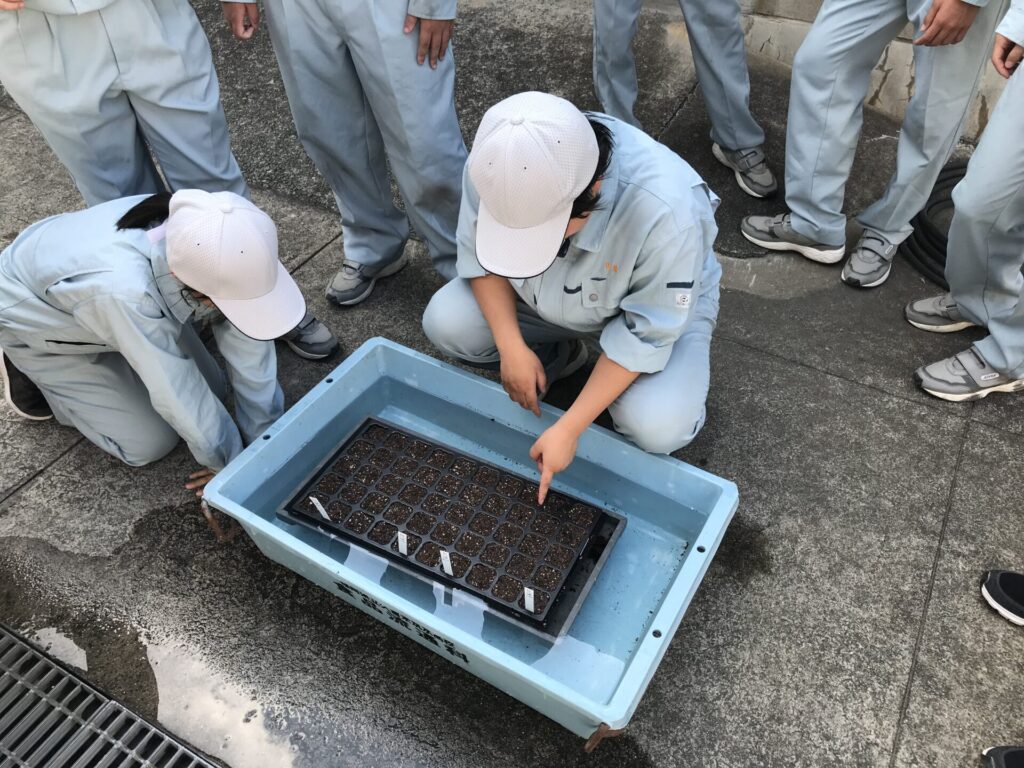1年生農業3学科が共通で学んでいる「農業と環境」で、ハクサイ・ブロッコリーの播種とダイコン・カブ・カツオナ・ジャガイモの播種を行いました。