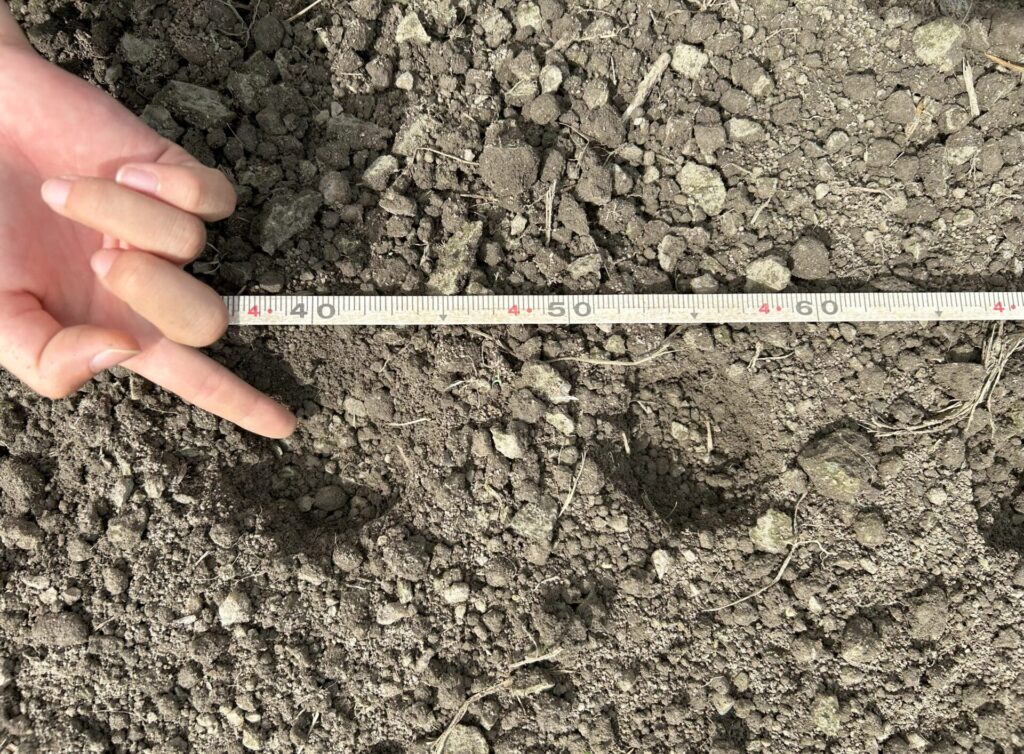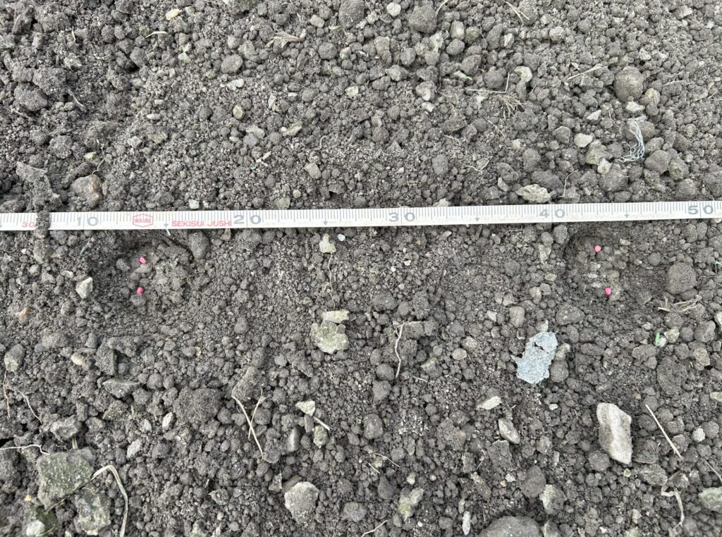 ジャガイモも成長後を想定して植える位置を決めて植え付けます。これから順調に成長してたくさん収穫できることを願ってます。