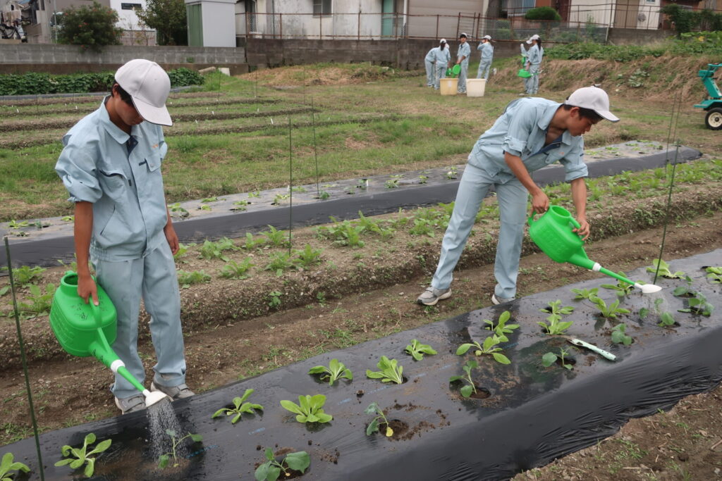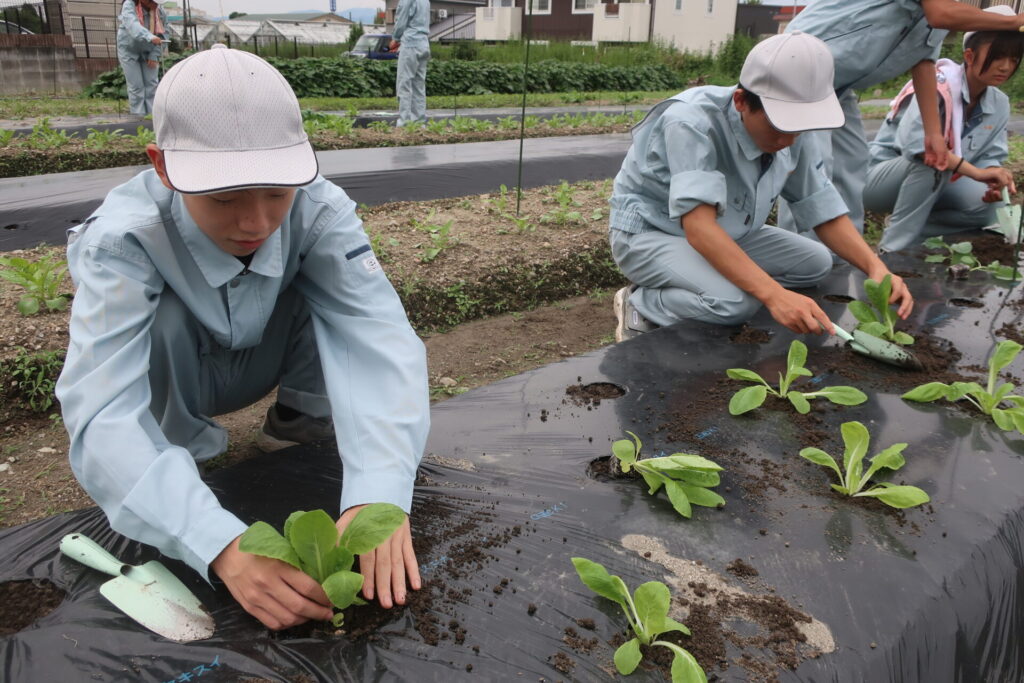 また、露地野菜栽培では自分たちで種まきをしたハクサイやブロッコリーの苗を定植しました。以前に種まきをしていたダイコンやタカナ、ジャガイモも同じく生育調査をしながら病害虫の被害に遭わないようにしっかり管理していきたいと思います!