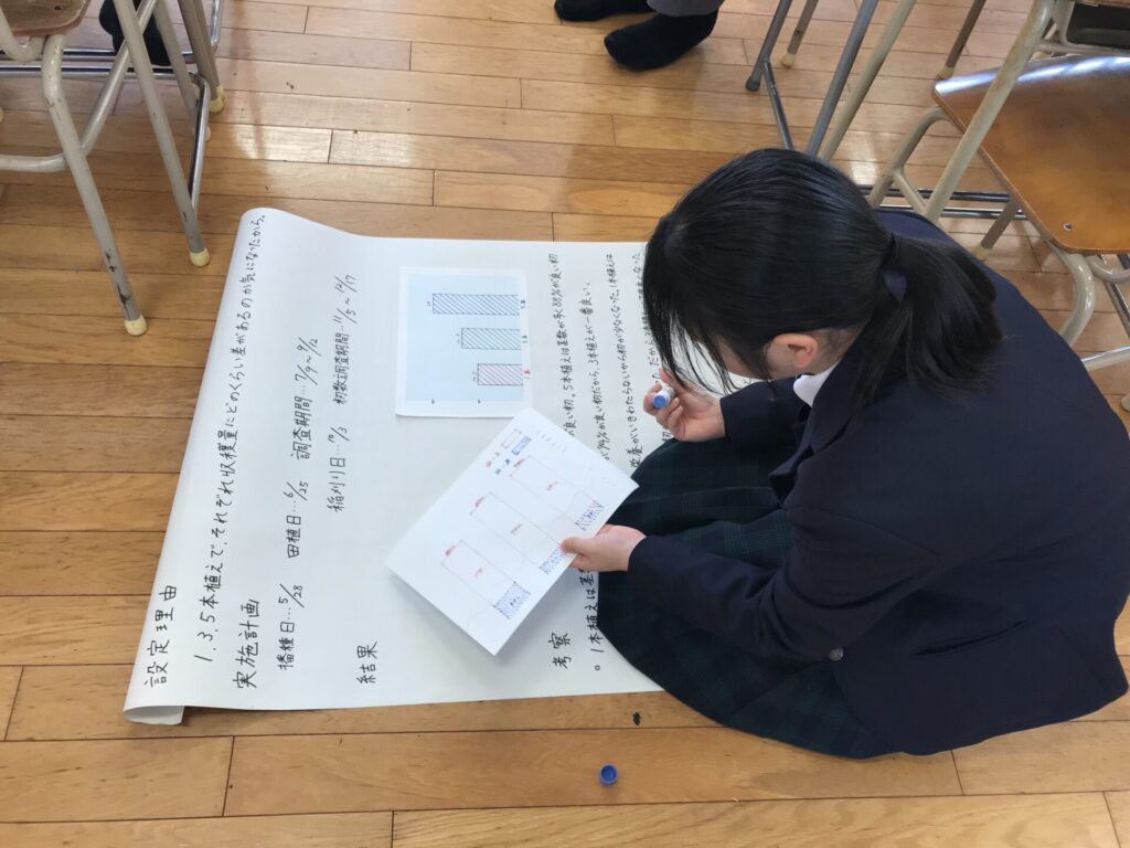 自分たちで毎回記録したデータを基にグラフなどを作り、科学的視点でわかりやすくまとめました。