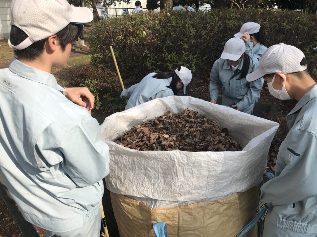 次の年に向けて腐葉土を作る為に、みんなで校内の落ち葉を採取しました。
