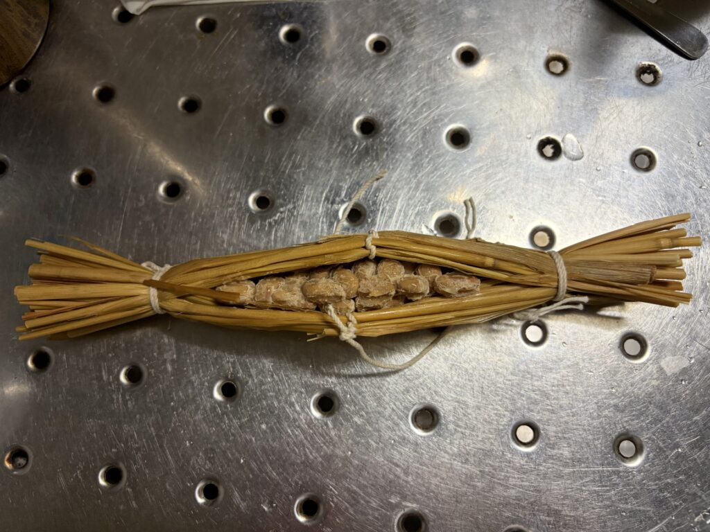 2 水稲栽培で収穫した稲わらを使用し、納豆を作りました。